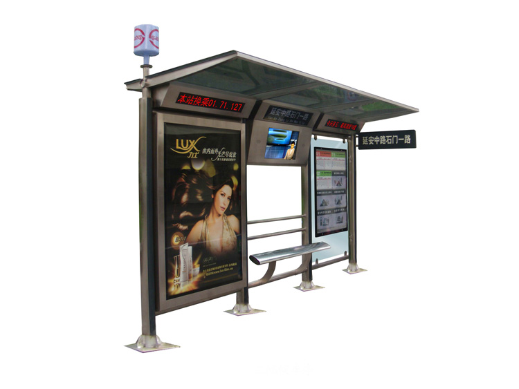 公交車候車亭一般是與公交站牌相配套的,為方便公交乘客候車時遮陽、防雨等,在車站、道路兩旁或綠化帶的港灣式公交?空旧辖ㄔO的交通設施。由于城市公交的日益發達,候車亭已發展成為城市一個不可或缺的重要組成部分,設計精美的候車亭也成為了城市一道美麗的風景。 一般候車亭棚體主要頂棚、立柱、頂弓、廣告燈箱和坐凳組成,也有用隔板來代替廣告燈箱的。