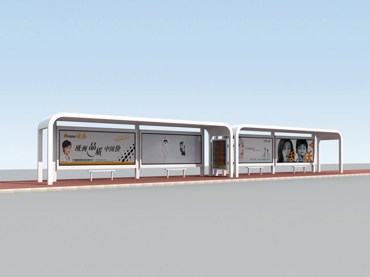 公交車候車亭一般是與公交站牌相配套的,為方便公交乘客候車時遮陽、防雨等,在車站、道路兩旁或綠化帶的港灣式公交?空旧辖ㄔO的交通設施。由于城市公交的日益發達,候車亭已發展成為城市一個不可或缺的重要組成部分,設計精美的候車亭也成為了城市一道美麗的風景。 一般候車亭棚體主要頂棚、立柱、頂弓、廣告燈箱和坐凳組成,也有用隔板來代替廣告燈箱的。
