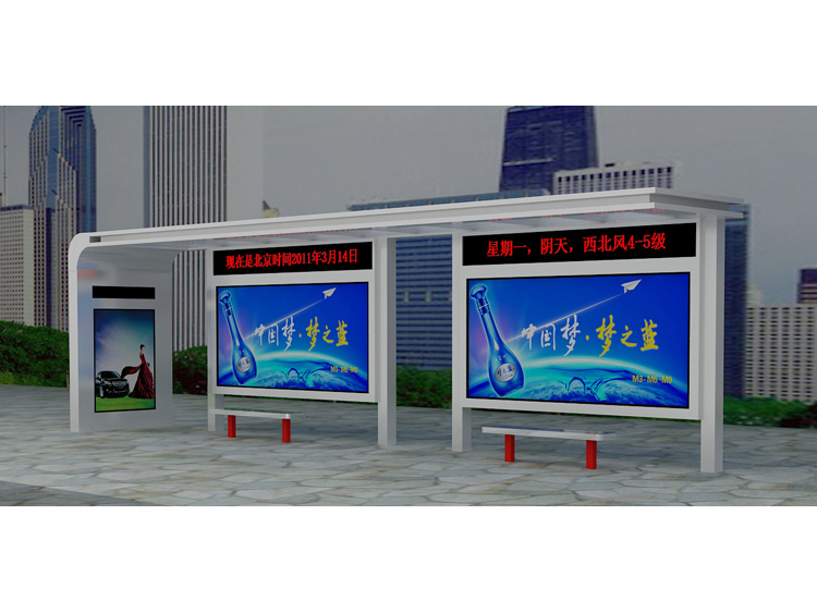 公交車候車亭一般是與公交站牌相配套的,為方便公交乘客候車時(shí)遮陽(yáng)、防雨等,在車站、道路兩旁或綠化帶的港灣式公交停靠站上建設(shè)的交通設(shè)施。由于城市公交的日益發(fā)達(dá),候車亭已發(fā)展成為城市一個(gè)不可或缺的重要組成部分,設(shè)計(jì)精美的候車亭也成為了城市一道美麗的風(fēng)景。 一般候車亭棚體主要頂棚、立柱、頂弓、廣告燈箱和坐凳組成,也有用隔板來(lái)代替廣告燈箱的。