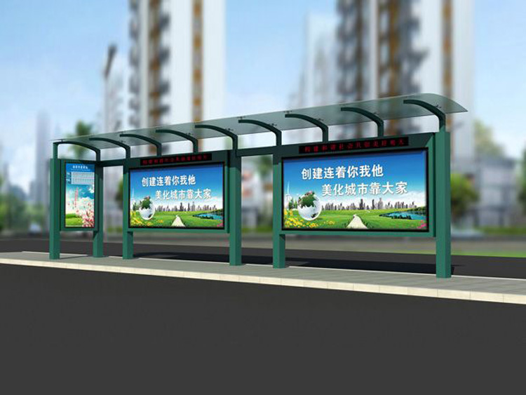 公交車候車亭一般是與公交站牌相配套的,為方便公交乘客候車時遮陽、防雨等,在車站、道路兩旁或綠化帶的港灣式公交停靠站上建設的交通設施。由于城市公交的日益發達,候車亭已發展成為城市一個不可或缺的重要組成部分,設計精美的候車亭也成為了城市一道美麗的風景。 一般候車亭棚體主要頂棚、立柱、頂弓、廣告燈箱和坐凳組成,也有用隔板來代替廣告燈箱的。