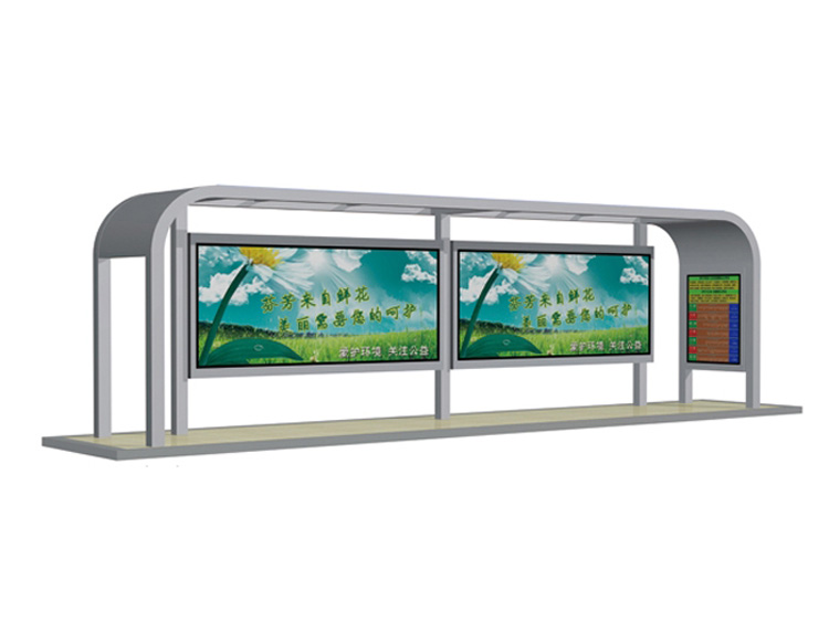 公交車候車亭一般是與公交站牌相配套的,為方便公交乘客候車時遮陽、防雨等,在車站、道路兩旁或綠化帶的港灣式公交停靠站上建設的交通設施。由于城市公交的日益發達,候車亭已發展成為城市一個不可或缺的重要組成部分,設計精美的候車亭也成為了城市一道美麗的風景。 一般候車亭棚體主要頂棚、立柱、頂弓、廣告燈箱和坐凳組成,也有用隔板來代替廣告燈箱的。