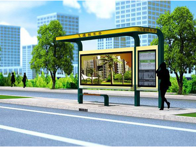 公交車候車亭一般是與公交站牌相配套的,為方便公交乘客候車時遮陽、防雨等,在車站、道路兩旁或綠化帶的港灣式公交停靠站上建設的交通設施。由于城市公交的日益發達,候車亭已發展成為城市一個不可或缺的重要組成部分,設計精美的候車亭也成為了城市一道美麗的風景。 一般候車亭棚體主要頂棚、立柱、頂弓、廣告燈箱和坐凳組成,也有用隔板來代替廣告燈箱的。