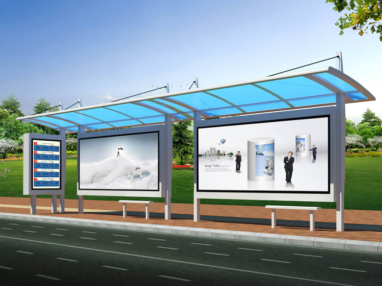 公交車候車亭一般是與公交站牌相配套的,為方便公交乘客候車時遮陽、防雨等,在車站、道路兩旁或綠化帶的港灣式公交停靠站上建設的交通設施。由于城市公交的日益發達,候車亭已發展成為城市一個不可或缺的重要組成部分,設計精美的候車亭也成為了城市一道美麗的風景。 一般候車亭棚體主要頂棚、立柱、頂弓、廣告燈箱和坐凳組成,也有用隔板來代替廣告燈箱的。