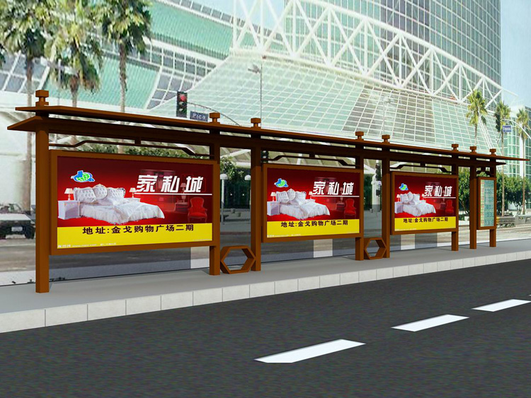公交車候車亭一般是與公交站牌相配套的,為方便公交乘客候車時遮陽、防雨等,在車站、道路兩旁或綠化帶的港灣式公交停靠站上建設(shè)的交通設(shè)施。由于城市公交的日益發(fā)達(dá),候車亭已發(fā)展成為城市一個不可或缺的重要組成部分,設(shè)計精美的候車亭也成為了城市一道美麗的風(fēng)景。 一般候車亭棚體主要頂棚、立柱、頂弓、廣告燈箱和坐凳組成,也有用隔板來代替廣告燈箱的。
