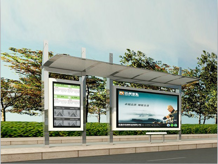 公交車候車亭一般是與公交站牌相配套的,為方便公交乘客候車時遮陽、防雨等,在車站、道路兩旁或綠化帶的港灣式公交停靠站上建設的交通設施。由于城市公交的日益發達,候車亭已發展成為城市一個不可或缺的重要組成部分,設計精美的候車亭也成為了城市一道美麗的風景。 一般候車亭棚體主要頂棚、立柱、頂弓、廣告燈箱和坐凳組成,也有用隔板來代替廣告燈箱的。