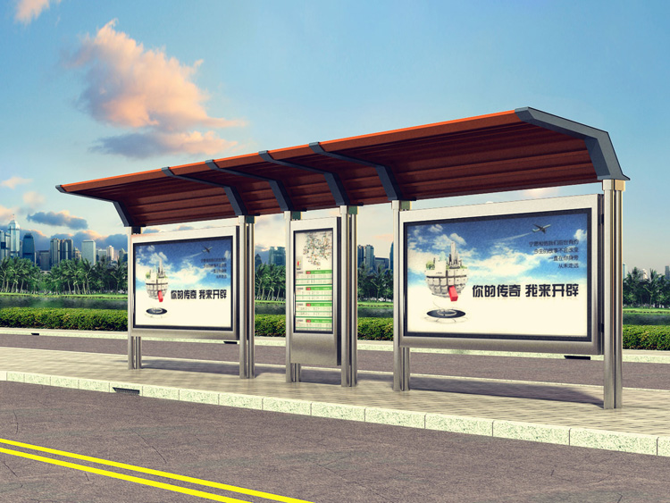 公交車候車亭一般是與公交站牌相配套的,為方便公交乘客候車時遮陽、防雨等,在車站、道路兩旁或綠化帶的港灣式公交停靠站上建設(shè)的交通設(shè)施。由于城市公交的日益發(fā)達(dá),候車亭已發(fā)展成為城市一個不可或缺的重要組成部分,設(shè)計精美的候車亭也成為了城市一道美麗的風(fēng)景。 一般候車亭棚體主要頂棚、立柱、頂弓、廣告燈箱和坐凳組成,也有用隔板來代替廣告燈箱的。