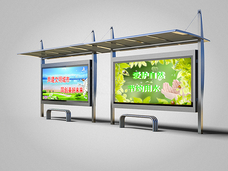 公交車候車亭一般是與公交站牌相配套的,為方便公交乘客候車時遮陽、防雨等,在車站、道路兩旁或綠化帶的港灣式公交停靠站上建設的交通設施。由于城市公交的日益發達,候車亭已發展成為城市一個不可或缺的重要組成部分,設計精美的候車亭也成為了城市一道美麗的風景。 一般候車亭棚體主要頂棚、立柱、頂弓、廣告燈箱和坐凳組成,也有用隔板來代替廣告燈箱的。