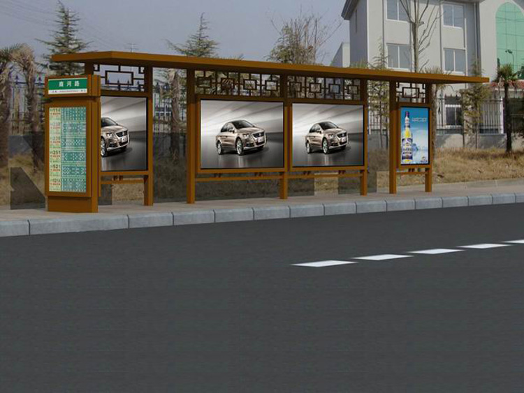 公交車候車亭一般是與公交站牌相配套的,為方便公交乘客候車時遮陽、防雨等,在車站、道路兩旁或綠化帶的港灣式公交停靠站上建設的交通設施。由于城市公交的日益發達,候車亭已發展成為城市一個不可或缺的重要組成部分,設計精美的候車亭也成為了城市一道美麗的風景。 一般候車亭棚體主要頂棚、立柱、頂弓、廣告燈箱和坐凳組成,也有用隔板來代替廣告燈箱的。