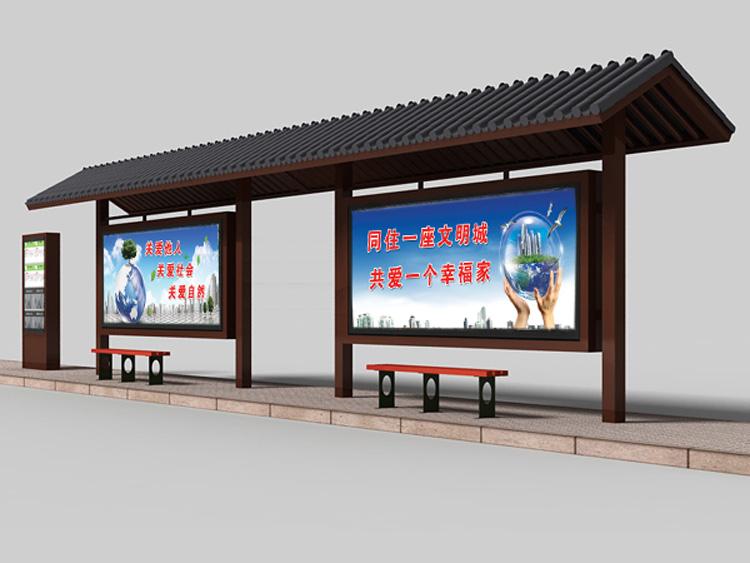公交車候車亭一般是與公交站牌相配套的,為方便公交乘客候車時遮陽、防雨等,在車站、道路兩旁或綠化帶的港灣式公交?空旧辖ㄔO(shè)的交通設(shè)施。由于城市公交的日益發(fā)達(dá),候車亭已發(fā)展成為城市一個不可或缺的重要組成部分,設(shè)計精美的候車亭也成為了城市一道美麗的風(fēng)景。 一般候車亭棚體主要頂棚、立柱、頂弓、廣告燈箱和坐凳組成,也有用隔板來代替廣告燈箱的。