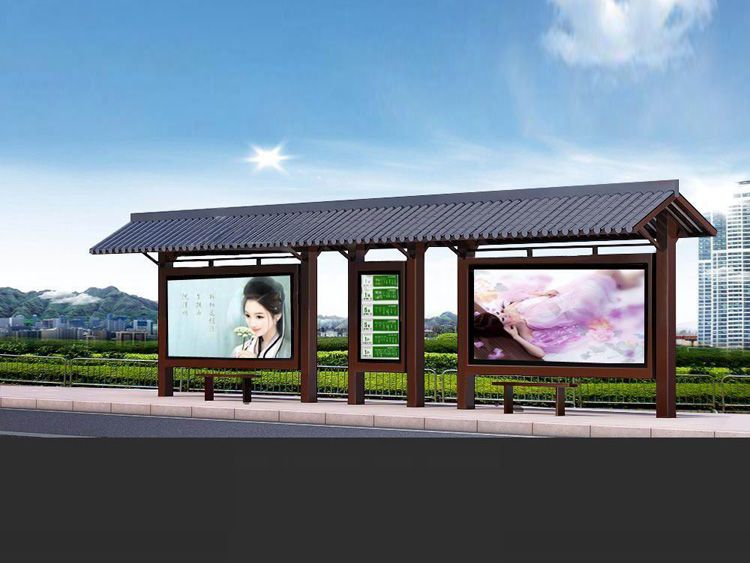 公交車候車亭一般是與公交站牌相配套的,為方便公交乘客候車時遮陽、防雨等,在車站、道路兩旁或綠化帶的港灣式公交停靠站上建設的交通設施。由于城市公交的日益發達,候車亭已發展成為城市一個不可或缺的重要組成部分,設計精美的候車亭也成為了城市一道美麗的風景。 一般候車亭棚體主要頂棚、立柱、頂弓、廣告燈箱和坐凳組成,也有用隔板來代替廣告燈箱的。