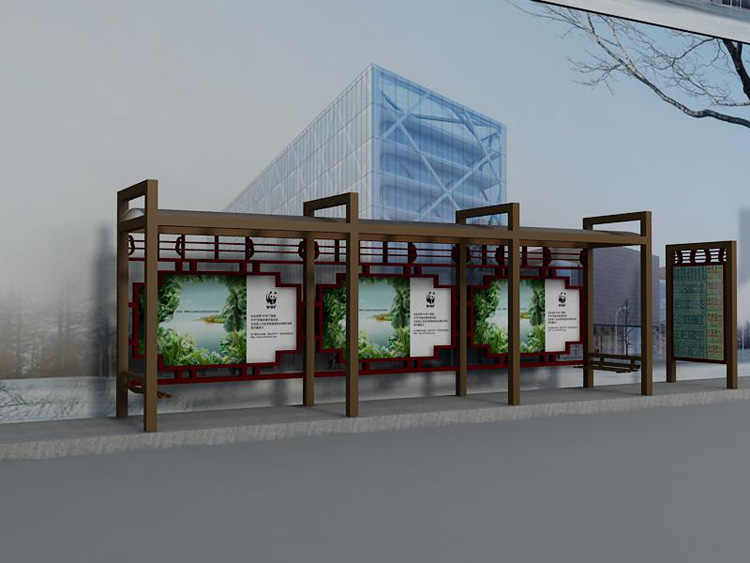 公交車候車亭一般是與公交站牌相配套的,為方便公交乘客候車時遮陽、防雨等,在車站、道路兩旁或綠化帶的港灣式公交停靠站上建設的交通設施。由于城市公交的日益發達,候車亭已發展成為城市一個不可或缺的重要組成部分,設計精美的候車亭也成為了城市一道美麗的風景。 一般候車亭棚體主要頂棚、立柱、頂弓、廣告燈箱和坐凳組成,也有用隔板來代替廣告燈箱的。