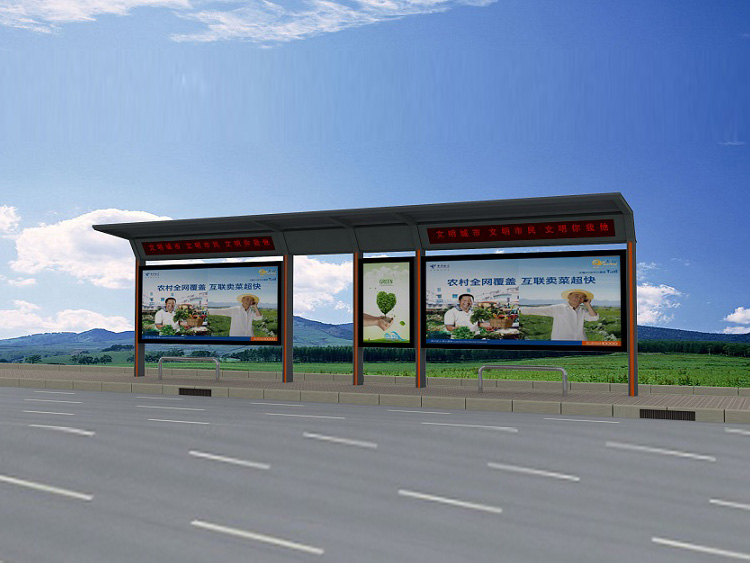 公交車候車亭一般是與公交站牌相配套的,為方便公交乘客候車時遮陽、防雨等,在車站、道路兩旁或綠化帶的港灣式公交停靠站上建設的交通設施。由于城市公交的日益發達,候車亭已發展成為城市一個不可或缺的重要組成部分,設計精美的候車亭也成為了城市一道美麗的風景。 一般候車亭棚體主要頂棚、立柱、頂弓、廣告燈箱和坐凳組成,也有用隔板來代替廣告燈箱的。