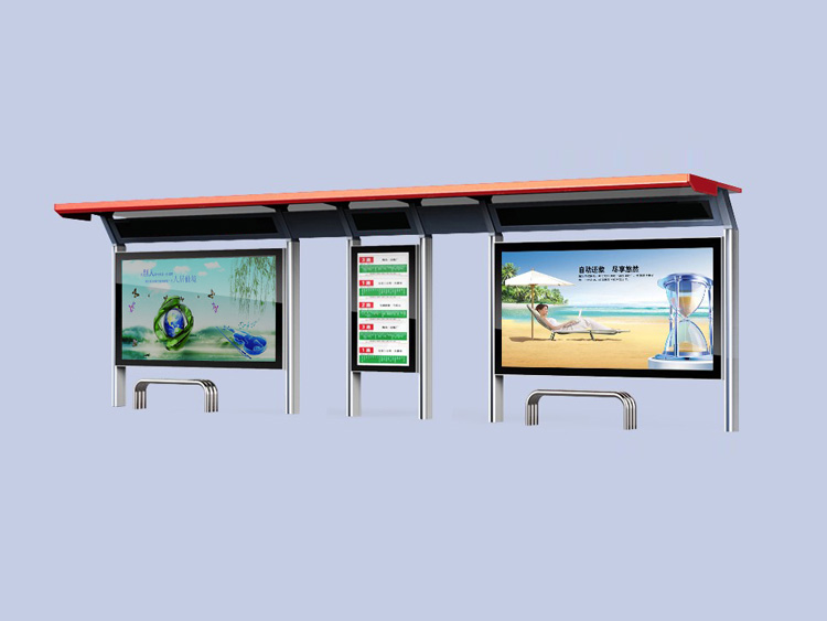 公交車候車亭一般是與公交站牌相配套的,為方便公交乘客候車時(shí)遮陽(yáng)、防雨等,在車站、道路兩旁或綠化帶的港灣式公交停靠站上建設(shè)的交通設(shè)施。由于城市公交的日益發(fā)達(dá),候車亭已發(fā)展成為城市一個(gè)不可或缺的重要組成部分,設(shè)計(jì)精美的候車亭也成為了城市一道美麗的風(fēng)景。 一般候車亭棚體主要頂棚、立柱、頂弓、廣告燈箱和坐凳組成,也有用隔板來(lái)代替廣告燈箱的。