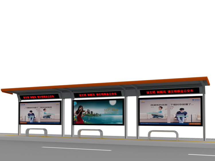 公交車候車亭一般是與公交站牌相配套的,為方便公交乘客候車時(shí)遮陽、防雨等,在車站、道路兩旁或綠化帶的港灣式公交停靠站上建設(shè)的交通設(shè)施。由于城市公交的日益發(fā)達(dá),候車亭已發(fā)展成為城市一個(gè)不可或缺的重要組成部分,設(shè)計(jì)精美的候車亭也成為了城市一道美麗的風(fēng)景。 一般候車亭棚體主要頂棚、立柱、頂弓、廣告燈箱和坐凳組成,也有用隔板來代替廣告燈箱的。